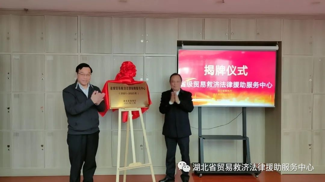 为外贸企业提供贸易救济案件法律援助,助力湖北制造“出海”征途更顺畅,近日,湖北省级贸易救济法律援助服务中心在湖北黄鹤律师事务所挂牌。湖北省商务厅党组成员、湖北省政府口岸办专职副主任杨青松,湖北省司法厅一级巡视员刘嗣元出席挂牌仪式并揭牌。湖北省商务厅、湖北省司法厅、湖北省贸促会相关处室负责人,武昌区司法局、湖北黄鹤律师事务所主要负责人,企业代表参加挂牌仪式。